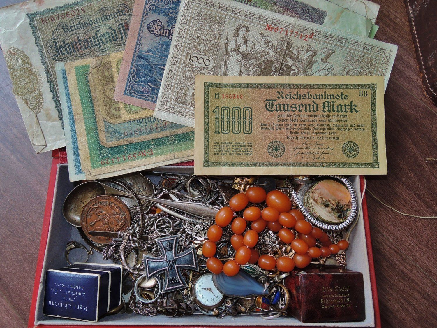 Militärnachlässe, alte Fotoalben, Orden und Abzeichen, Bücher, Ausweise, Ansichtskarten, Ferngläser, Münzen und Briefmarken.
