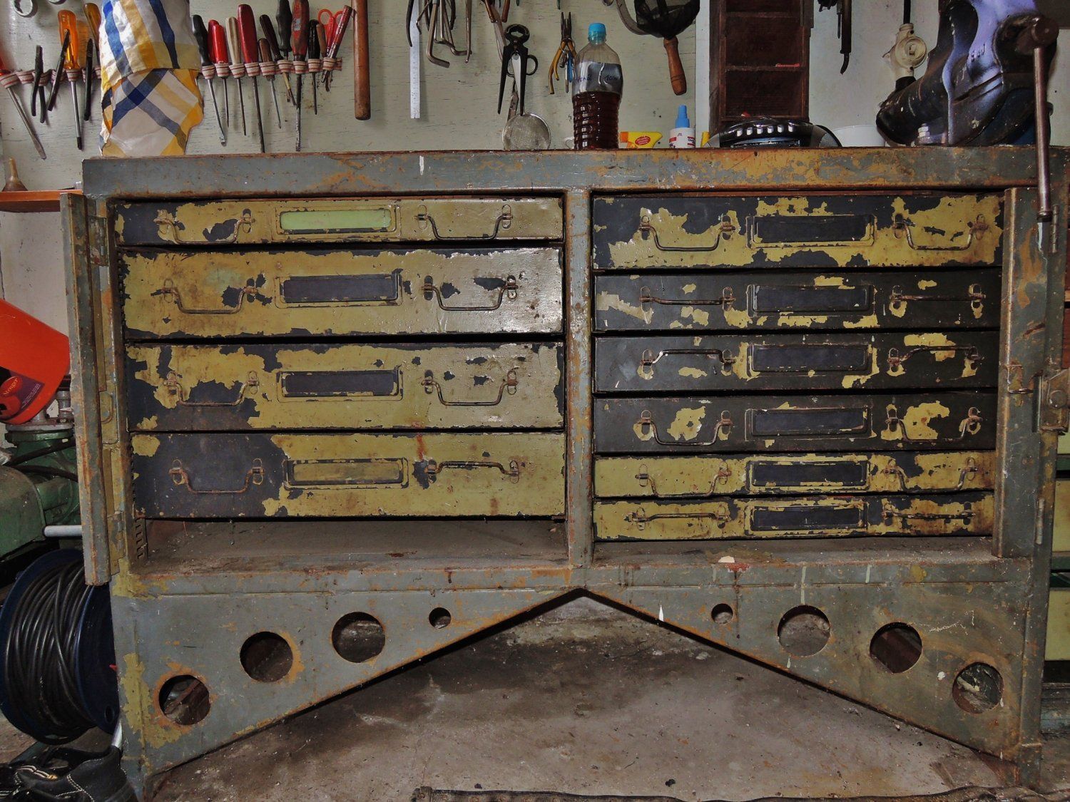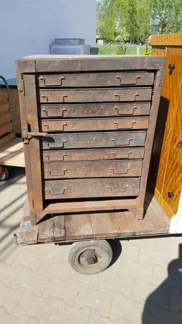 Antikes Inventar aus Gasthöfen, Bauernhöfen, Läden und Werkstätten. Alter Hausrat von Keller bis Dachboden sowie alte Möbel von vor 1950. Lampen, Oldtimer Auto- und Motorradteile, Handwagen, Zinkwannen, Kuchenbretter, altes Werkzeug, Hobel- und Blechwerkbänke. Metallhocker.